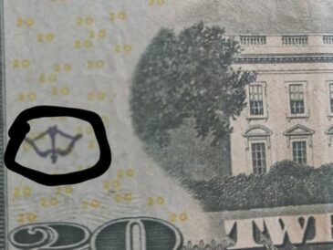 A few U.S. dollar bills bear strange marks — small stamps, pentagrams or a small …